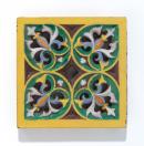 Majolica tiles of five different designs manufactured by Minton & Co. for the ceramic stove at the Great Exhibition of 1851. The stove was the centrepiece of the Medieval Court and entirely designed by Augustus Pugin. The cast-iron stove itself was manufactured by Hardman & Co of Birmingham.
